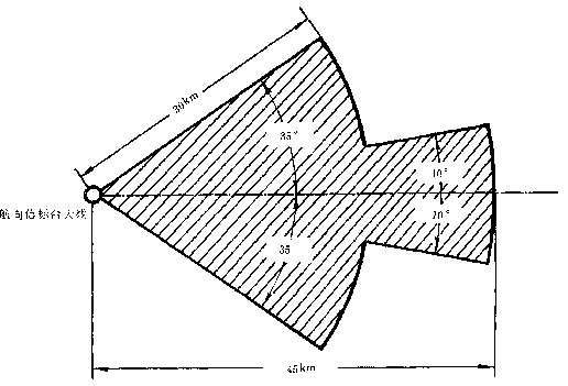 圖1 航向信標臺覆蓋區(qū) 4.1.4 航向信標臺覆蓋區(qū)內(nèi),最低信號場強為40μV/m(32dB)。