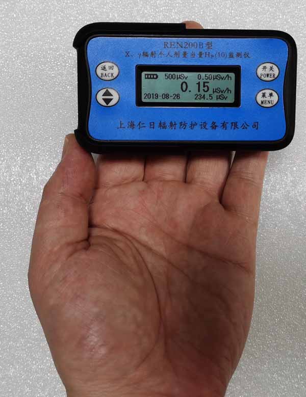 REN200B型X、γ輻射個人劑量當量HP(10)監測儀(簡稱:個人劑量報警儀)內置高量程蓋格計數管為探測器,主要用來監測各種放射性工作場所的X、γ以及硬β射線的輻射,具有較寬的測量范圍。能顯示工作場所的劑量當量率和累積劑量,更換電池時,日期及累積數據能永久保存。可選配RenRiPersonal個人劑量管理軟件,該軟件可存儲多個人的歷史數據,能記錄日累積、月累積、年累積、輻照時長、計算平均劑量率、扣除或不扣除本底輻射,且以文字和圖譜的方式展現數據。廣泛應用于核電站、加速器、鋼鐵、化工、同位素應用、工業X、γ無損探傷、放射醫療、鈷源治療、γ輻照、放射性實驗室、核設施周圍環境監測等領域中的工作人員進行個人安全防護監測及放射性提示。